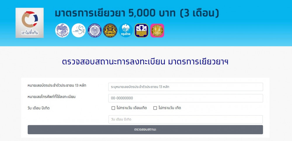 1. เข้าไปที่เว็บไซต์ เราไม่ทิ้งกัน.com จากนั้นให้ไปที่เมนู ตรวจสอบสถานะ